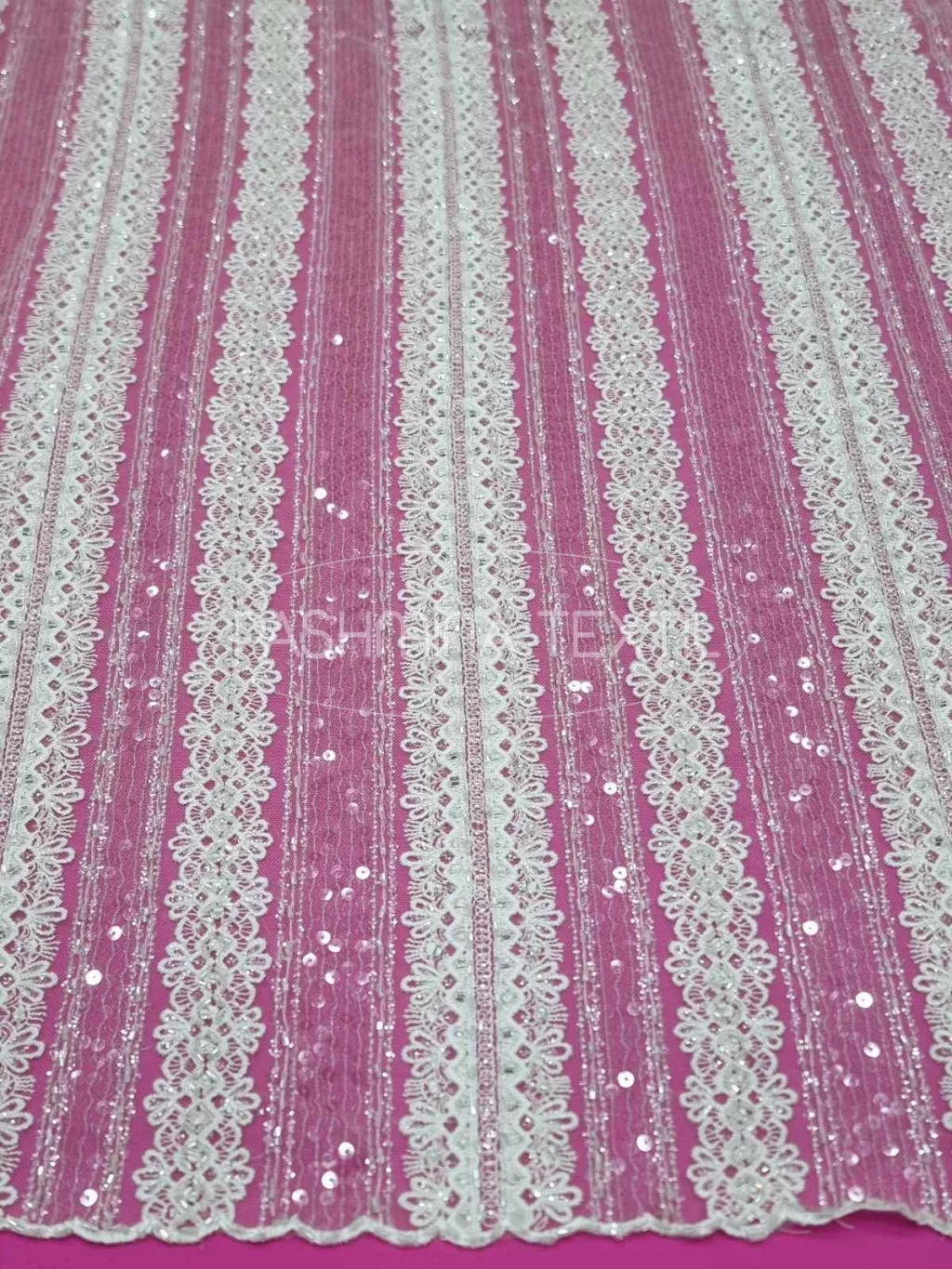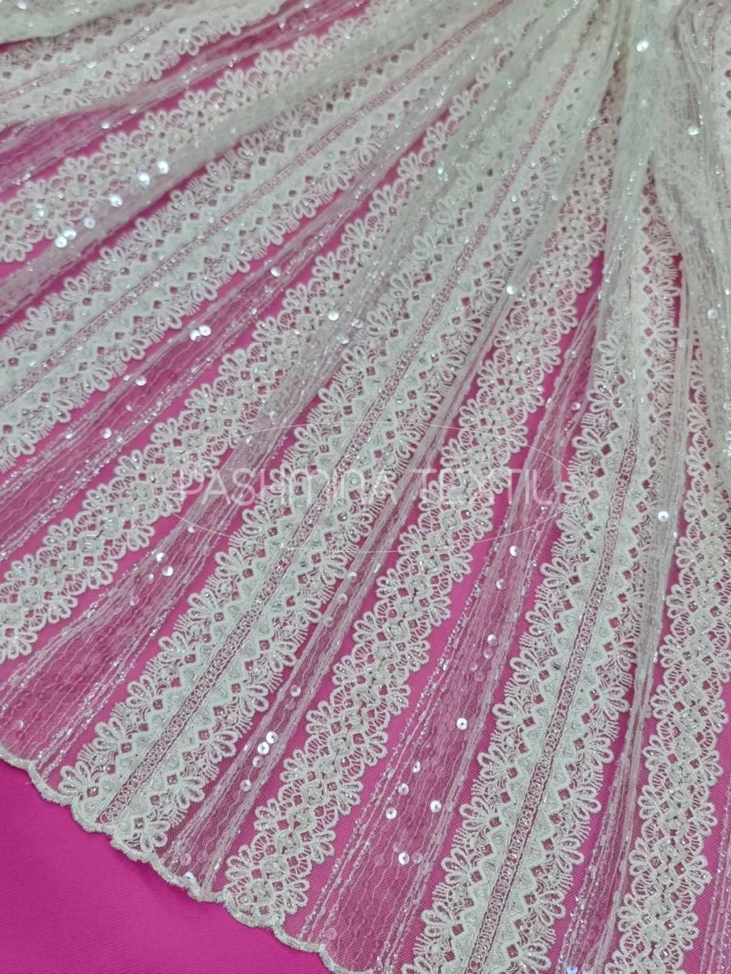 Csillogó flitteres geometrikus tüllcsipke ivory
