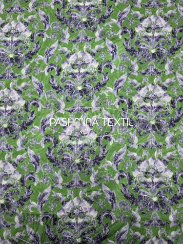 Gyapjú jersey - Önmagában mintás zöld alapon kék barokk mintás