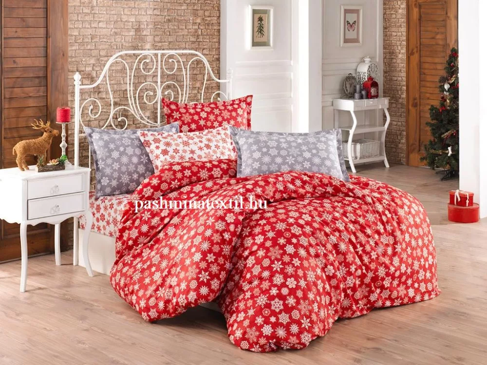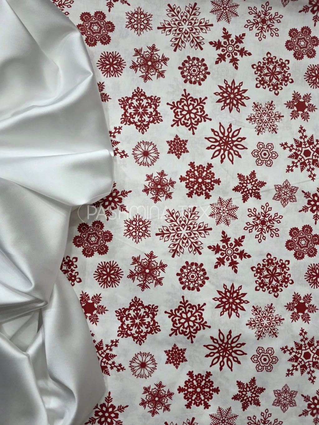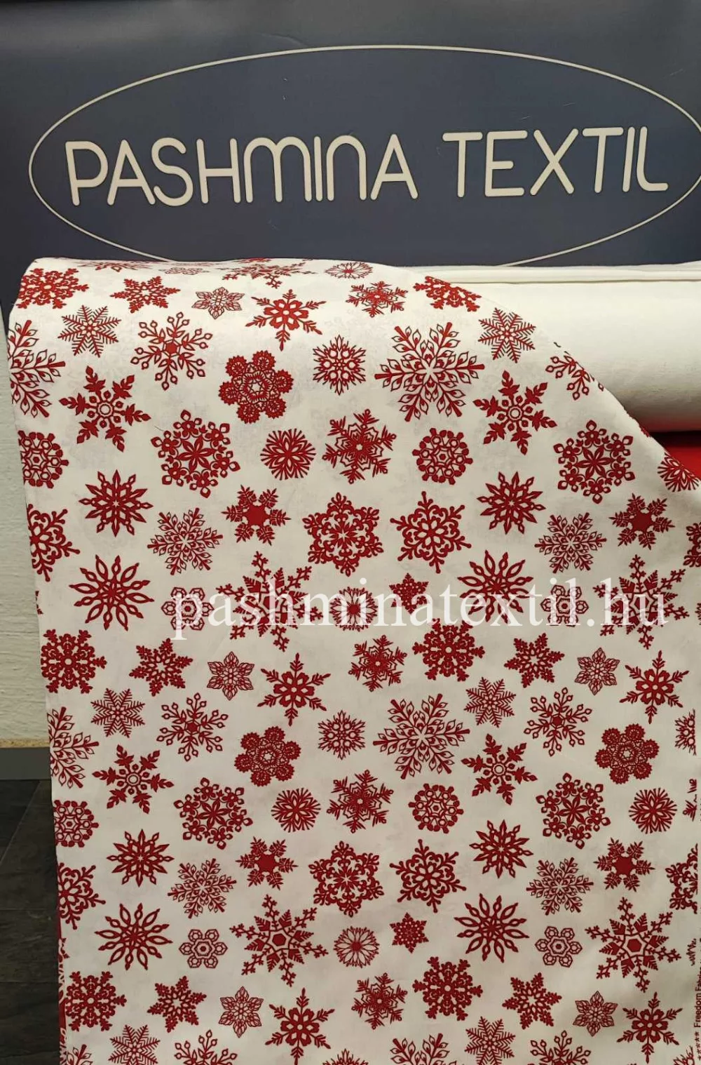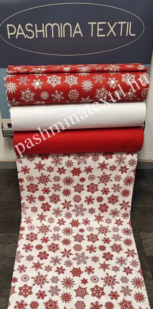 Pamutvászon - Piros hópelyhes - fehér alapon