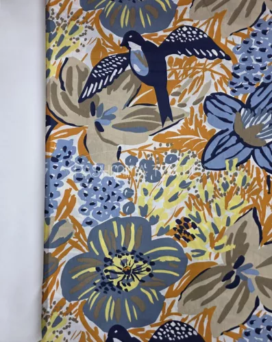 Pamutvászon - Virág és madár minta - fehér alapon
