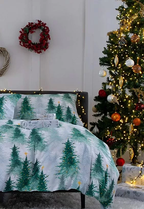 Karácsonyi pamutvászon-Fenyőfa mintás