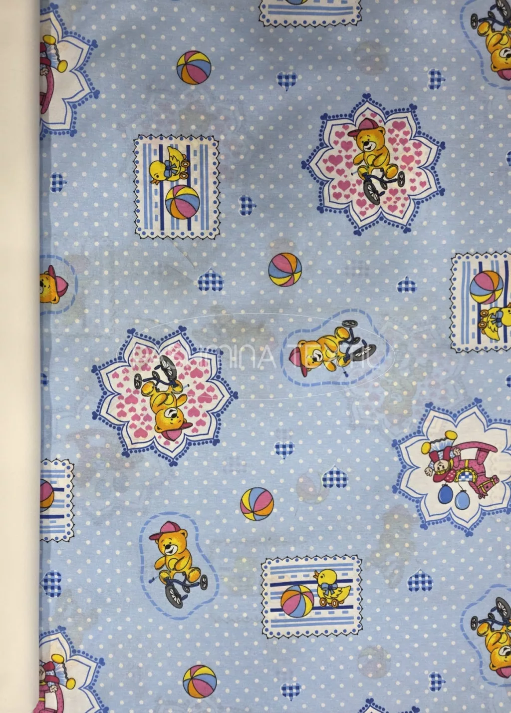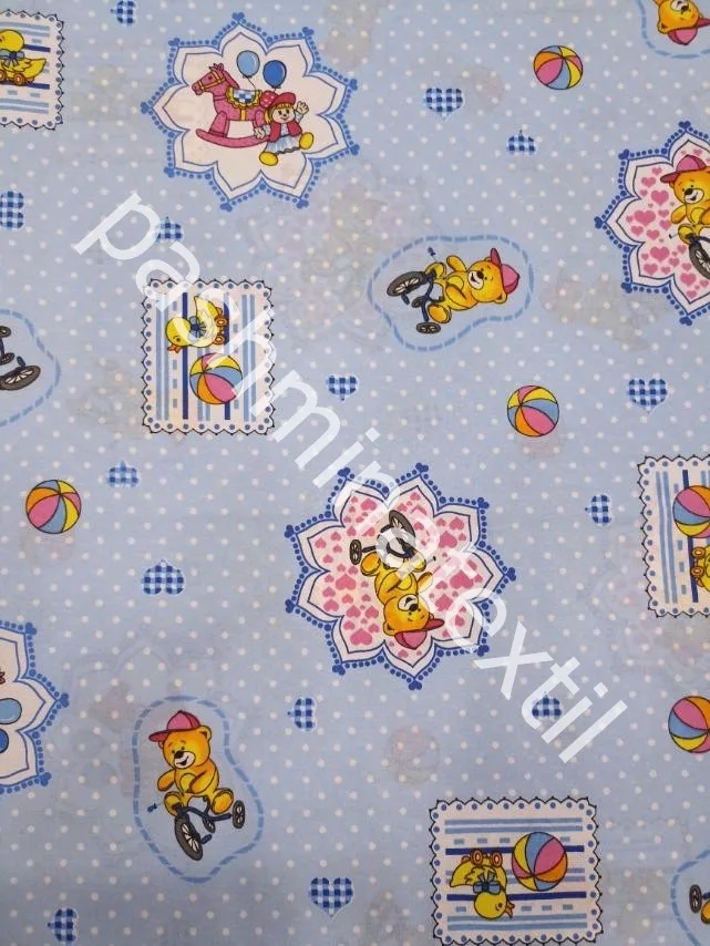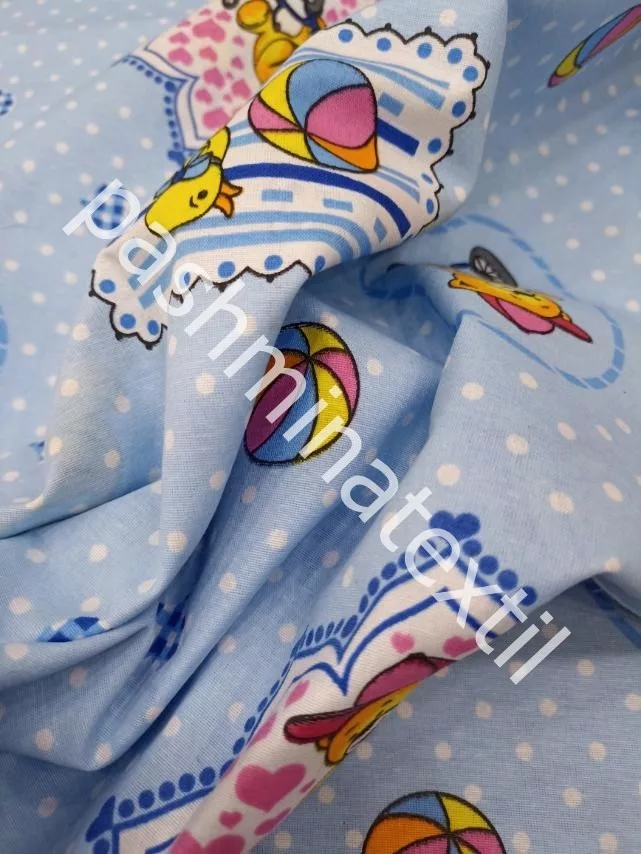 Pamutvászon - Maci-kacsa minta - baba kék alapon