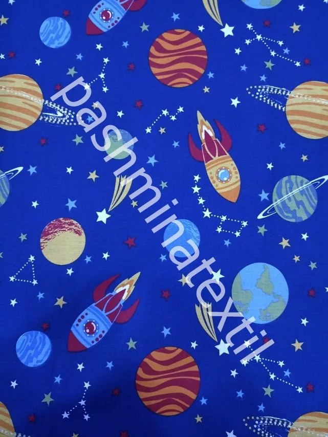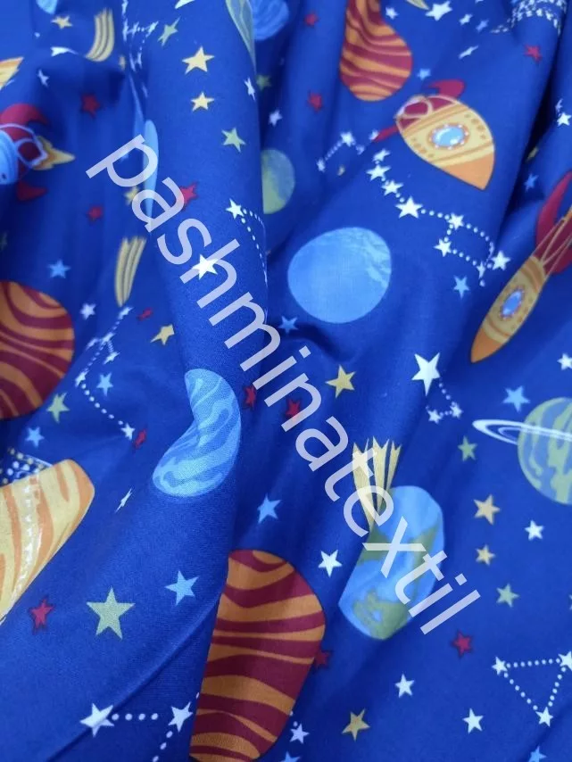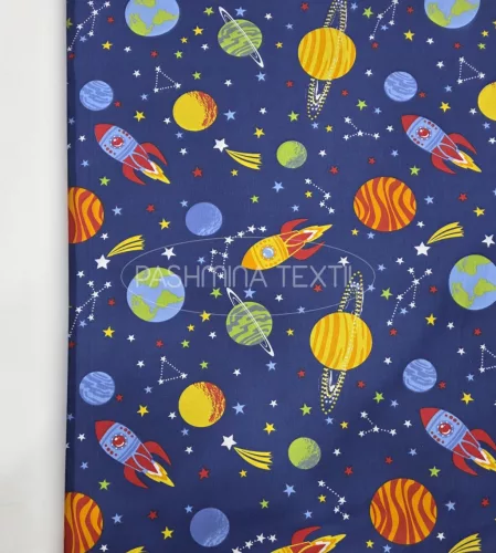 Pamutvászon - Bolygó minta - tinta kék alapon