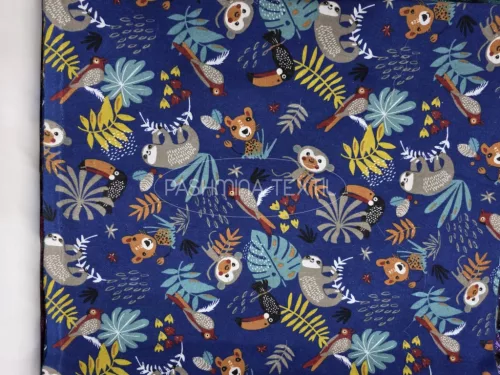 Pamut FLANEL - Jungel minta - sötét kék alapon