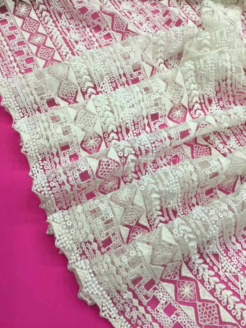 Matt gyöngyös geometrikus tüllcsipke - Ivory