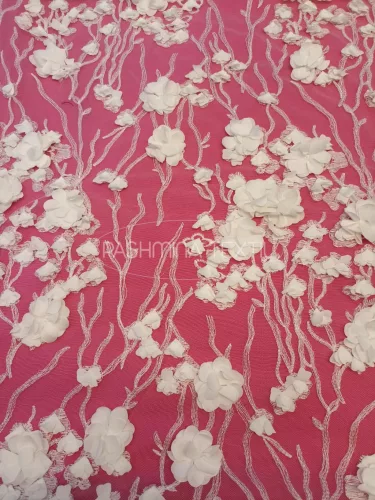 Francia különlegességek egyedi, extravagáns megjelenésű menyasszonyi ruhák elkészítéséhez. Térben gazdagított látványvilága ideális a klasszikus csipkeruhák egyedivé tételéhez. A hímzett tüllalap gyöngyökkel, fémszálakkal, flitterekkel, tollakkal és izgalmas lebegő motívumokkal, levelekkel, selyemvirágokkal díszített. Alkalmas felsőrészek, míderek látványos gazdagításához, avagy az egész ruhát borító elegáns és exkluzív sziluettek megvalósításához. Egyedi megjelenést kölcsönös az arra vágyóaknak.