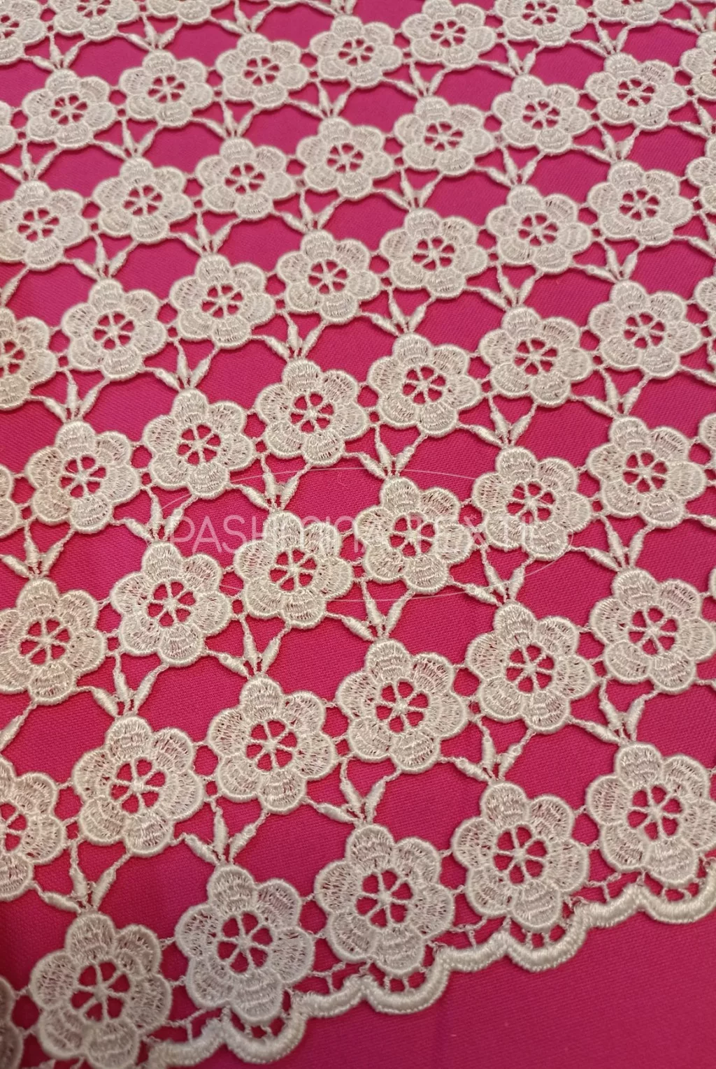 Apró virág mintás pamut légcsipke. Alap nélküli, egymásba kapcsolódó motívumokból áll. Applikálható, tetszés szerint alakítható. Szélessége 100 cm!