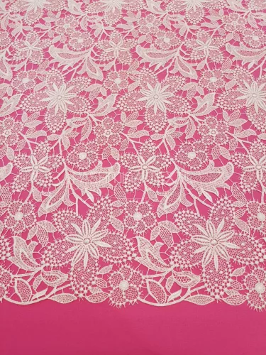 Kifejezetten vintage klasszikusok és bohó esküvői varratott ruhák alapanyaga. Bordűrökkel rendelkezik az azt kívánó fazonokhoz, de könnyen kialakítható bárhol a csipkén belül egy újabb.