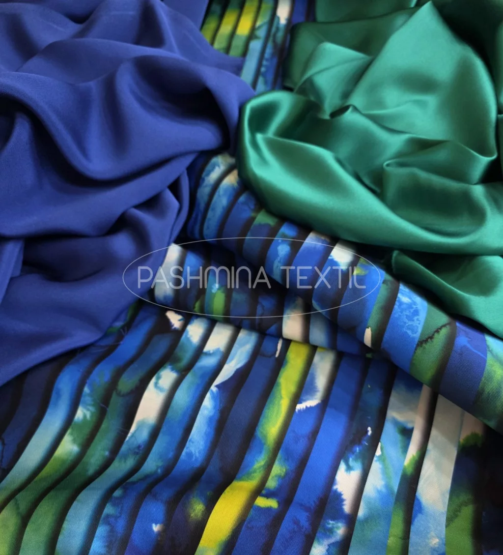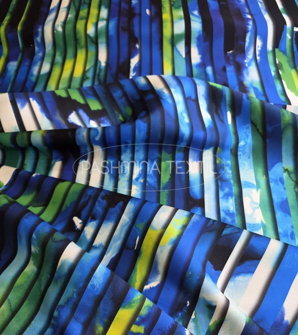 Kék plisszé - modern mintás selyem zibbelin a méteráruk egyik legsokoldalúbb alapanyaga. Nemes fénye és tartása miatt tökéletes választás menyecskeruhákhoz, örömanya kosztümökhöz, egyenes vonalú vagy nagy volumenű kis- és nagyestélyikhez, illetve sellő fazonokhoz. Felülete finoman fényes, a szövésirányból adódó sávolyminta közelről látható. Különleges szövése kényelmes, szűkebb és plasztikus fazonok készítésére is alkalmassá teszi. 140 cm széles, 100% PL.