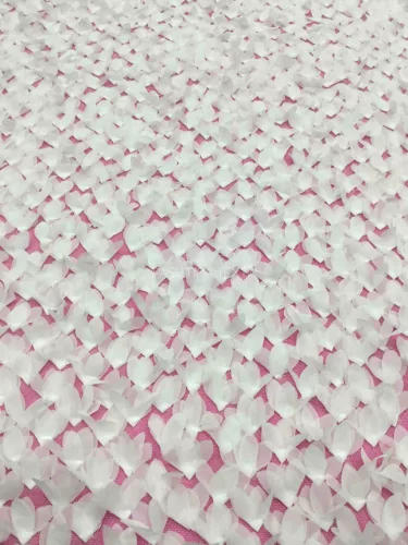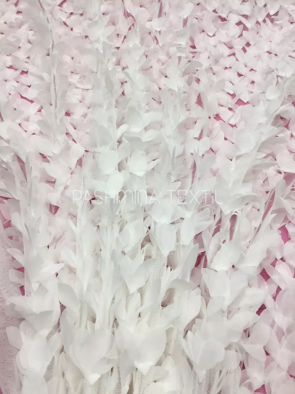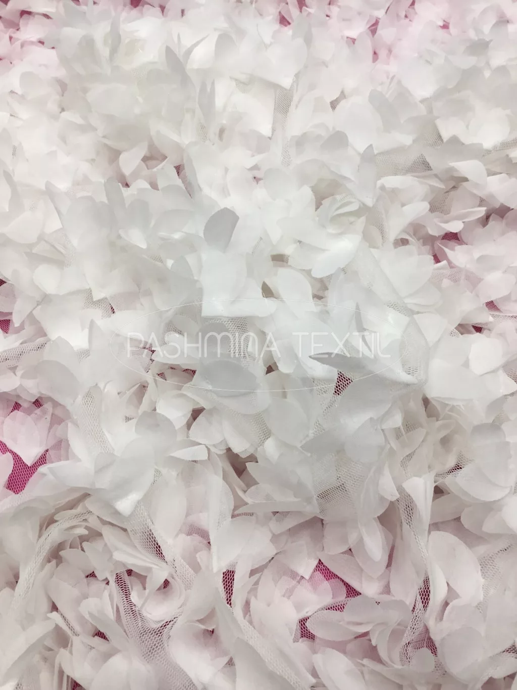 Francia különlegességek egyedi, extravagáns megjelenésű menyasszonyi ruhák elkészítéséhez. Térben gazdagított látványvilága ideális a klasszikus csipkeruhák egyedivé tételéhez. A hímzett tüllalap gyöngyökkel, fémszálakkal, flitterekkel, tollakkal és izgalmas lebegő motívumokkal, levelekkel, selyemvirágokkal díszített. Alkalmas felsőrészek, míderek látványos gazdagításához, avagy az egész ruhát borító elegáns és exkluzív sziluettek megvalósításához. Egyedi megjelenést kölcsönös az arra vágyóaknak.