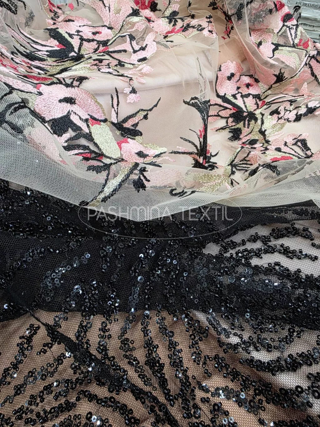 Omlós, jó esésű, látványos tüll csipke. Elsősorban szabott pl.: kámzsa fazonú vagy pillangó ujjú felsőrészekre, sellő és minimalista fazonú ruhákra ajánlott felhasználása. Szélessége 130cm.