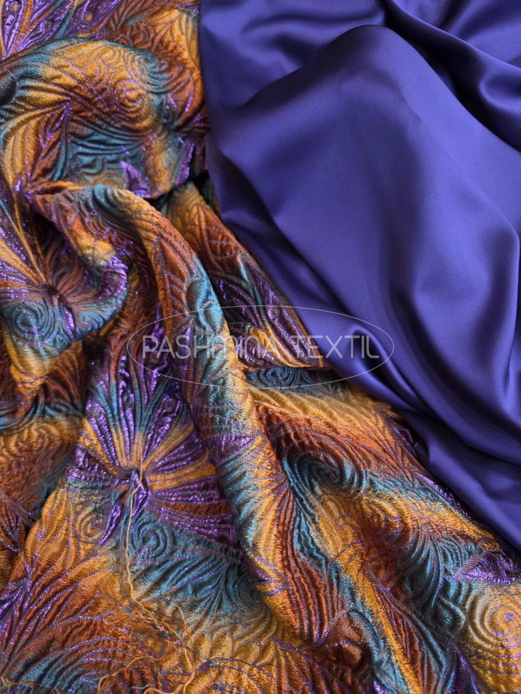 Francia fémszálas selyem jacquard nemeskelme modern, keleti hangulatú absztrakt mintával és 3D textúrával. Ideális alapanyag királynői, nagy volumenű fazonokhoz, kosztümökhöz és komplékhoz. Nemeskelme kínálatunkban a megfelelő színű és tulajdonságú anyagokkal egyedi, személyre szabott látványvilágú öltözék készíthető belőle. Kérjük, kosárba helyezés előtt ellenőrizzék a rendelkezésre álló mennyiséget, mivel 150 centiméternél kisebb darab nem maradhat készletünkben! Válasszon mennyiséget a legördülő menüből. "A" Vég -Egyben megvásárolható kisruha vagy kabát mennyiség "B" Vég - Egyben megvásárolható bővülő fazonú öltözék vagy több részes öltözék mennyiség.
