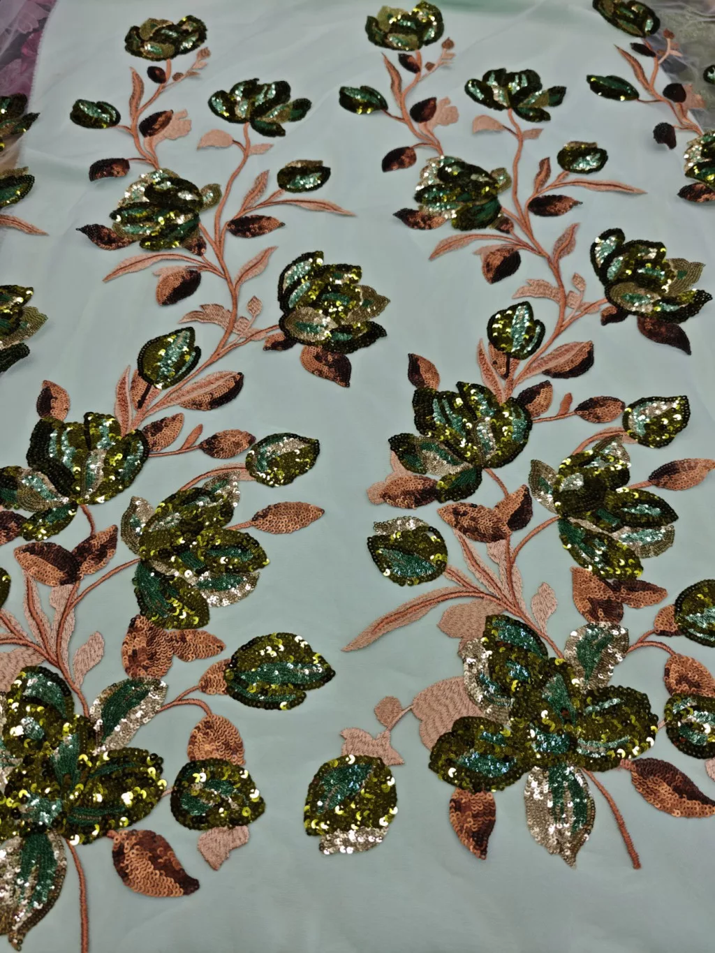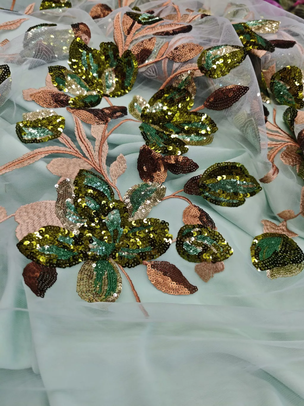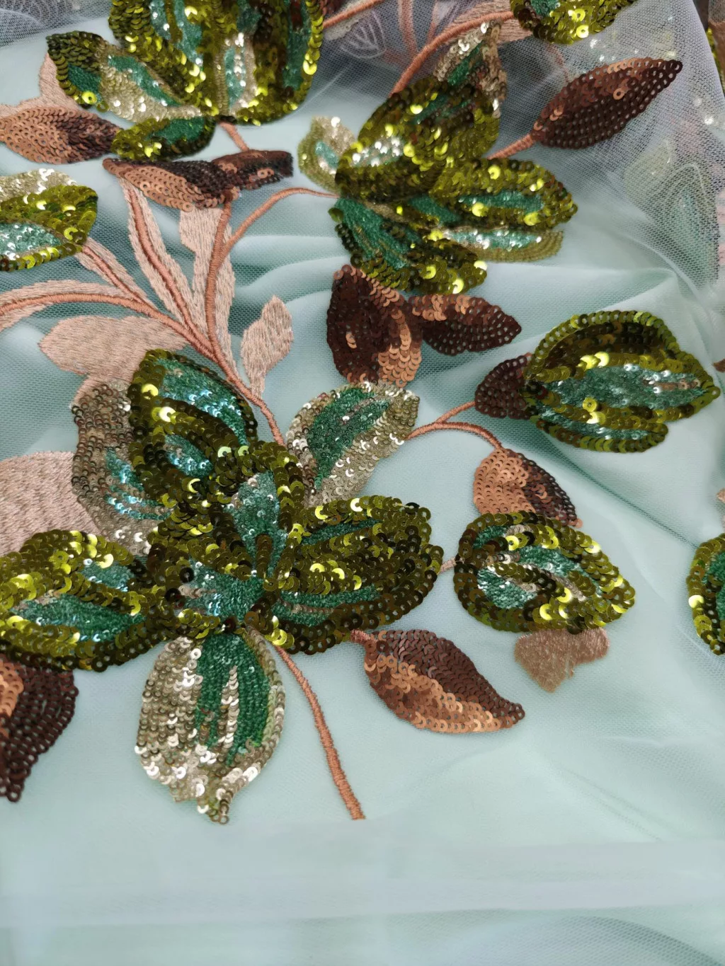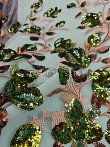 Spanyol hímzett flitterezett tüllcsipke-fahéj