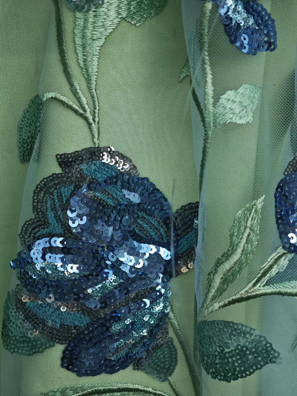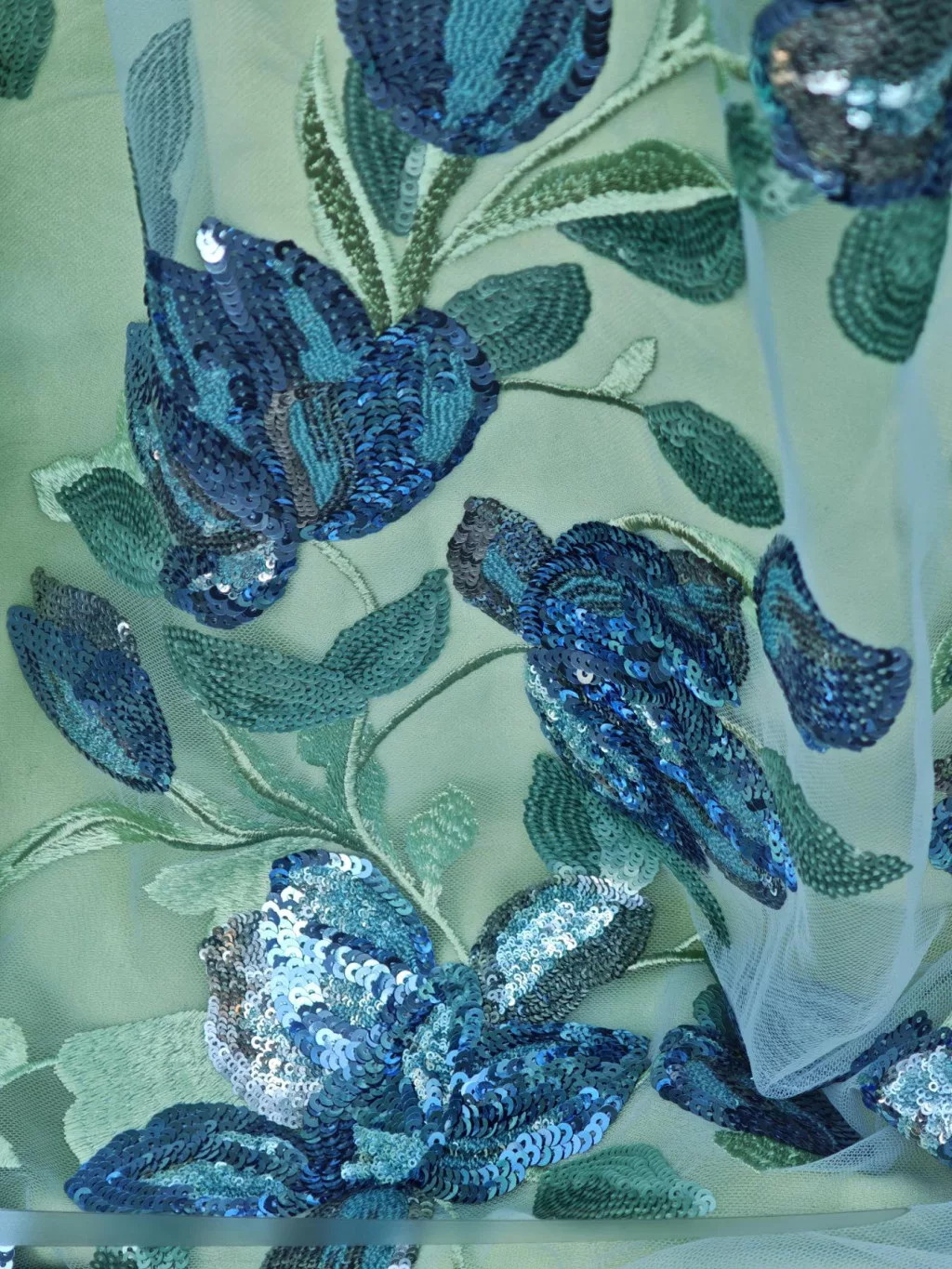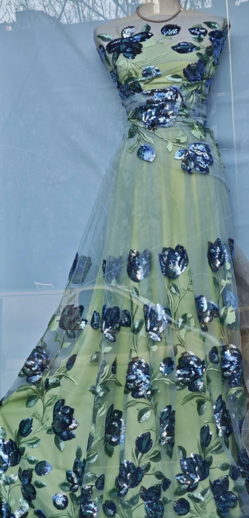 Modern mintavilágú, hímzett- flitterezett tüll csipke különlegesség.