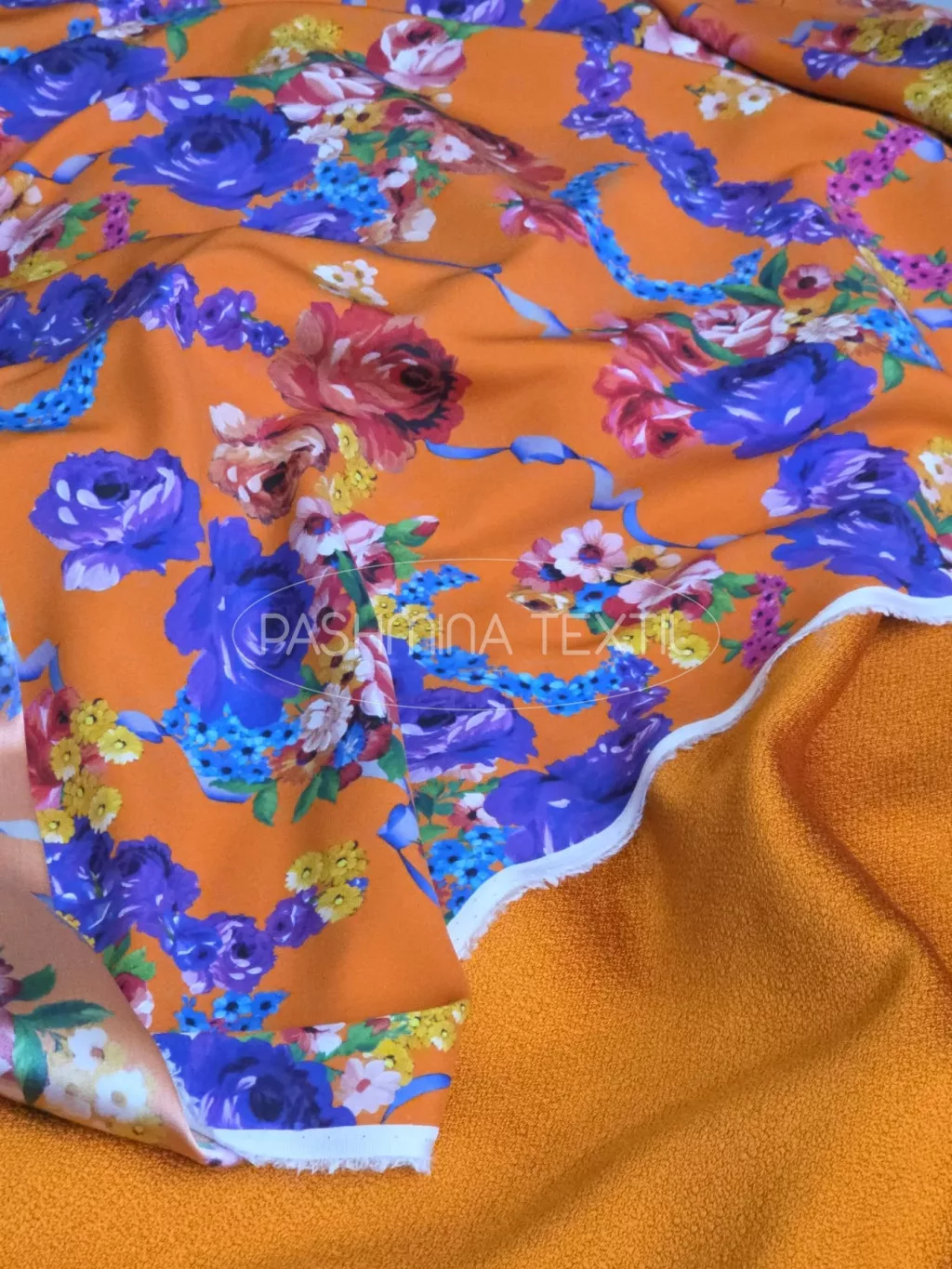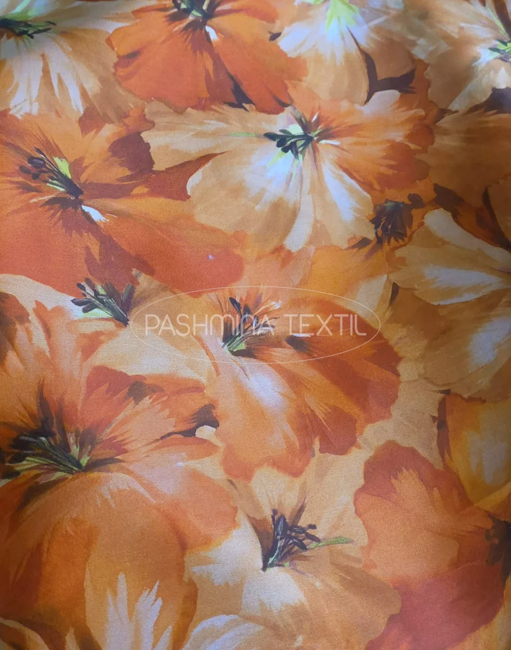 Narancssárga virágos - hernyóselyem organza