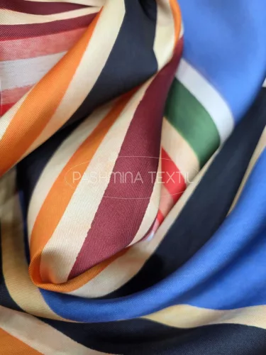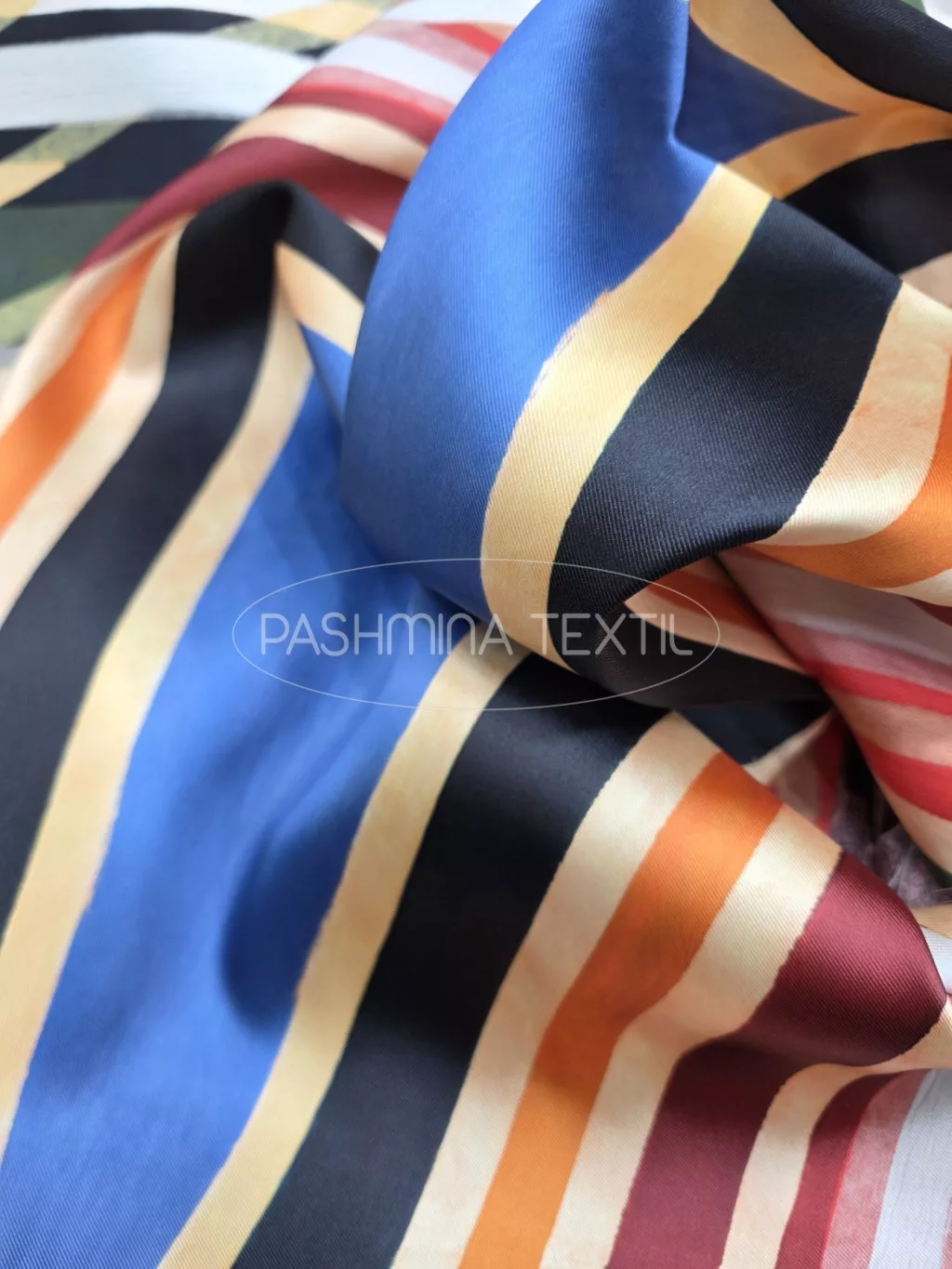 Színes modern mintás selyem zibbelin a méteráruk egyik legsokoldalúbb alapanyaga. Nemes fénye és tartása miatt tökéletes választás menyecskeruhákhoz, örömanya kosztümökhöz, egyenes vonalú vagy nagy volumenű kis- és nagyestélyikhez, illetve sellő fazonokhoz. Felülete finoman fényes, a szövésirányból adódó sávolyminta közelről látható. Különleges szövése kényelmes, szűkebb és plasztikus fazonok készítésére is alkalmassá teszi. 140 cm széles, 100% PL.