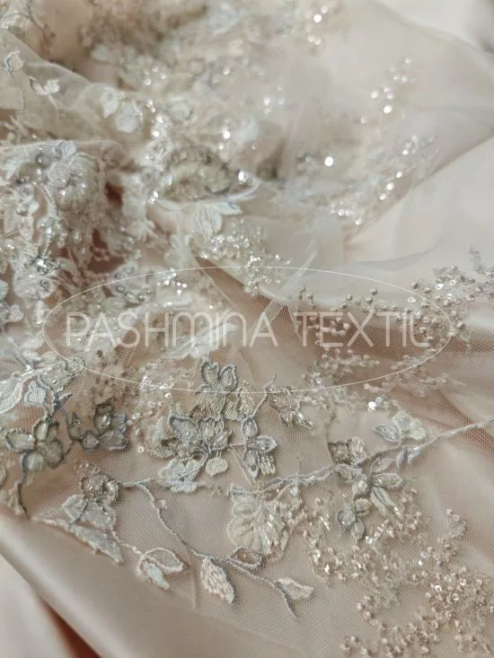 Francia pasztell gyöngyös álom hímzett tüllcsipke és púder King düsesz hangulat