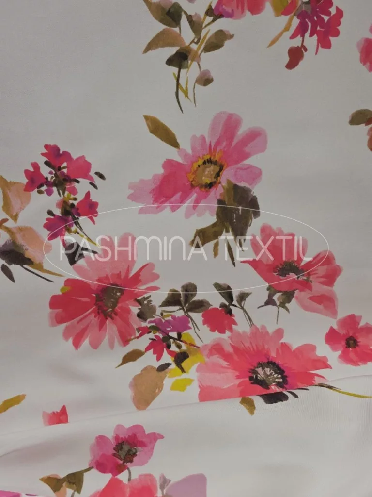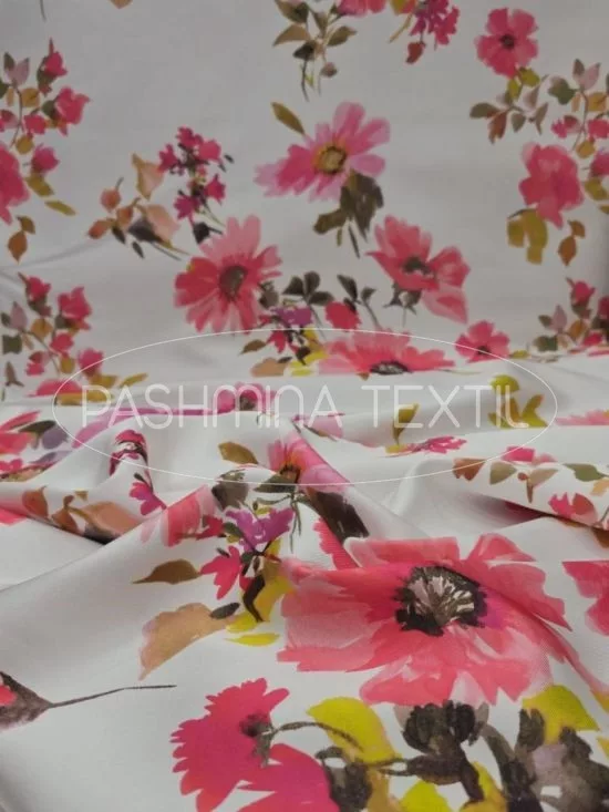 "Porcelán virágcsokrok" selyem zibbelin- pink