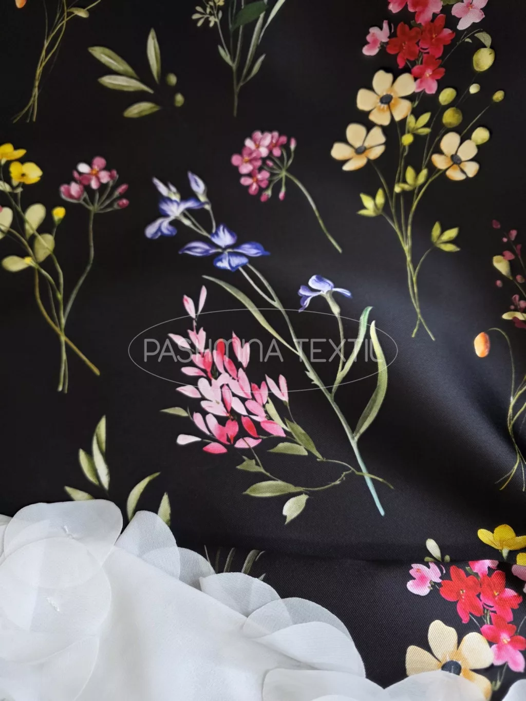 Designer mintás selyem zibbelin a méteráruk egyik legsokoldalúbb alapanyaga. Nemes fénye és tartása miatt tökéletes választás menyecskeruhákhoz, örömanya kosztümökhöz, egyenes vonalú vagy nagy volumenű kis- és nagyestélyikhez, illetve sellő fazonokhoz. Felülete finoman fényes, a szövésirányból adódó sávolyminta közelről látható. Különleges szövése kényelmes, szűkebb és plasztikus fazonok készítésére is alkalmassá teszi. 140 cm széles, 100% PL. Kérjük, kosárba helyezés előtt ellenőrizzék a rendelkezésre álló mennyiséget, mivel 150 centiméternél kisebb darab nem maradhat készletünkben! Kapcsolódó menüpontban elérhető ugyanezen mintának a kisebb léptékű hernyóselyem szatén változata is.