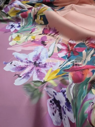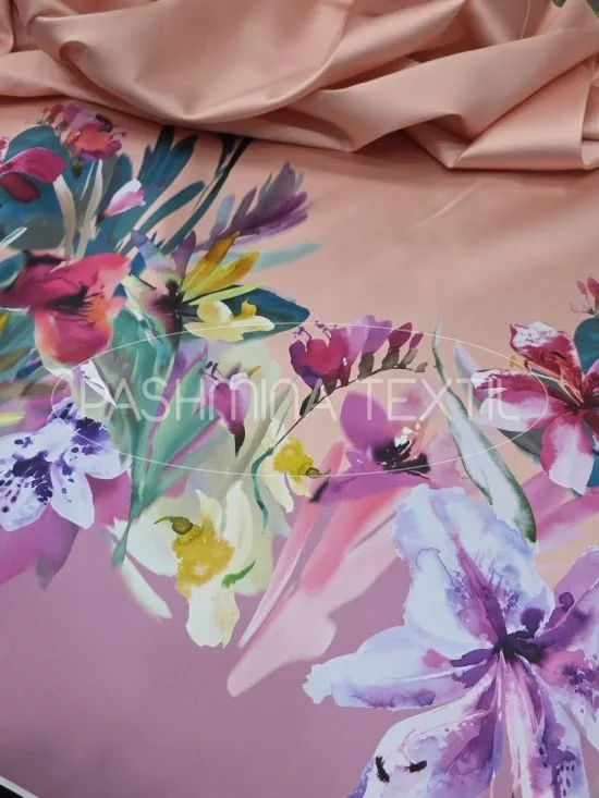 Designer mintás selyem zibbelin a méteráruk egyik legsokoldalúbb alapanyaga. Nemes fénye és tartása miatt tökéletes választás menyecskeruhákhoz, örömanya kosztümökhöz, egyenes vonalú vagy nagy volumenű kis- és nagyestélyikhez, illetve sellő fazonokhoz. Felülete finoman fényes, a szövésirányból adódó sávolyminta közelről látható. Különleges szövése kényelmes, szűkebb és plasztikus fazonok készítésére is alkalmassá teszi. A design virágos, bordűrös elrendezéssel lett megálmodva, az utolsó képünkön látható módon. 140 cm széles, 100% PL.