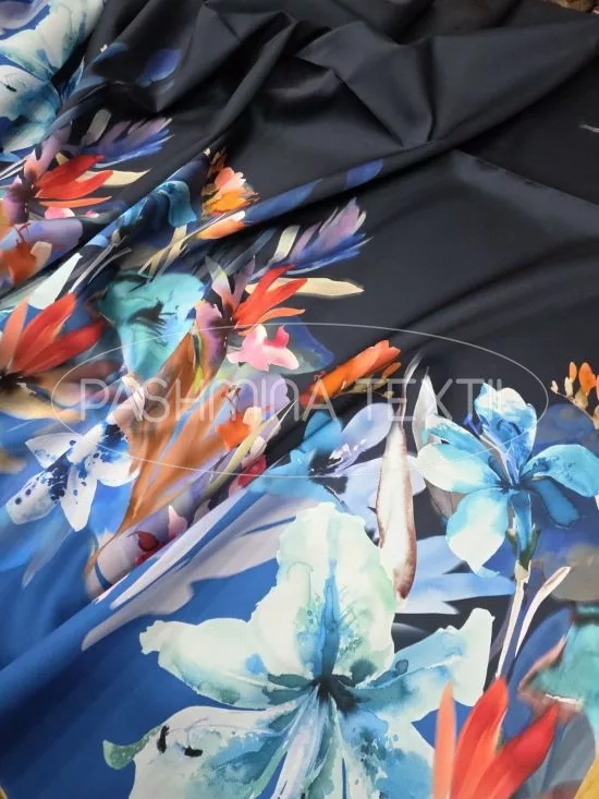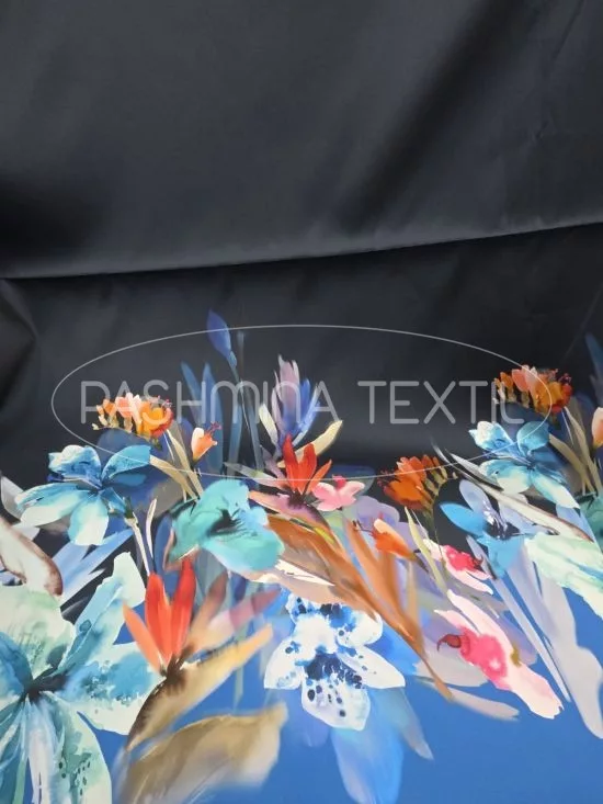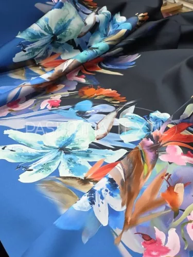 Sötétkék-királykék virág bordűrös - selyem zibbelin