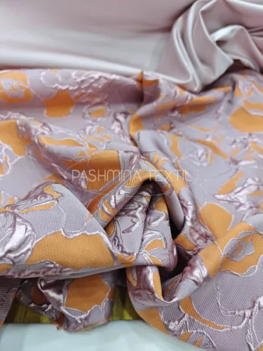 Francia fémszálas selyem jacquard nemeskelme modern, keleti hangulatú absztrakt mintával és 3D textúrával. Ideális alapanyag királynői, nagy volumenű fazonokhoz, kosztümökhöz és komplékhoz. Nemeskelme kínálatunkban a megfelelő színű és tulajdonságú anyagokkal egyedi, személyre szabott látványvilágú öltözék készíthető belőle.