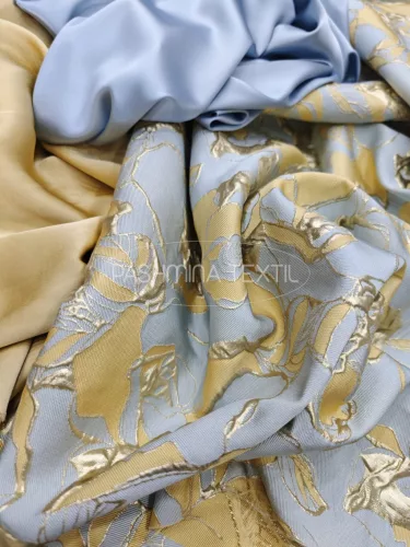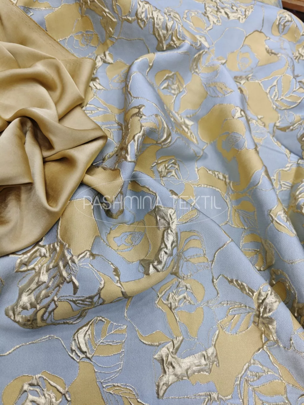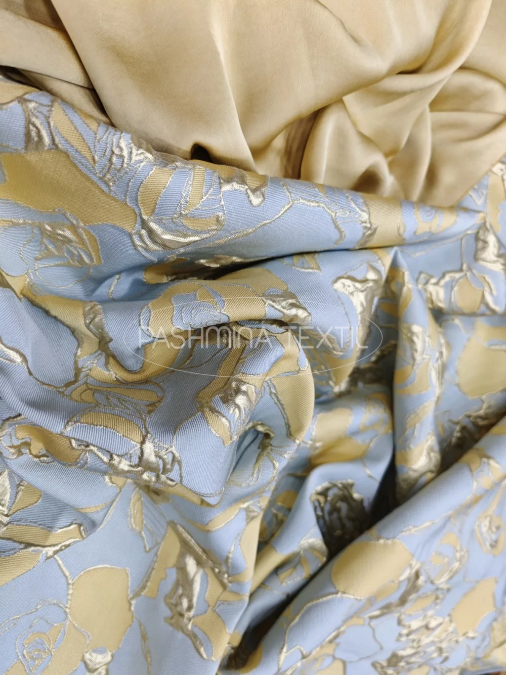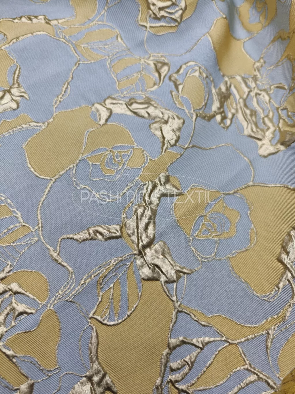 Francia fémszálas selyem jacquard nemeskelme modern, keleti hangulatú absztrakt mintával és 3D textúrával. Ideális alapanyag királynői, nagy volumenű fazonokhoz, kosztümökhöz és komplékhoz. Nemeskelme kínálatunkban a megfelelő színű és tulajdonságú anyagokkal egyedi, személyre szabott látványvilágú öltözék készíthető belőle.