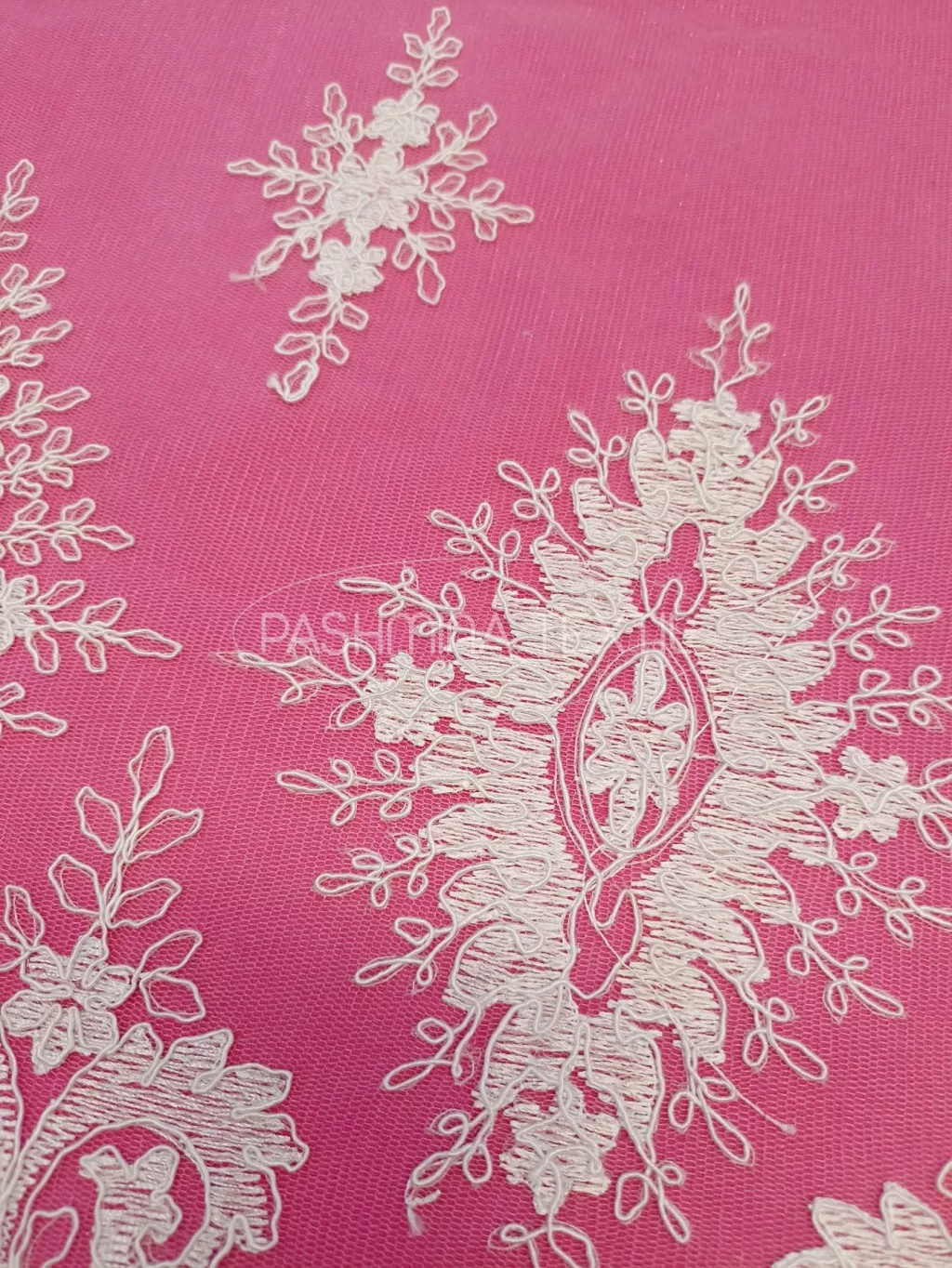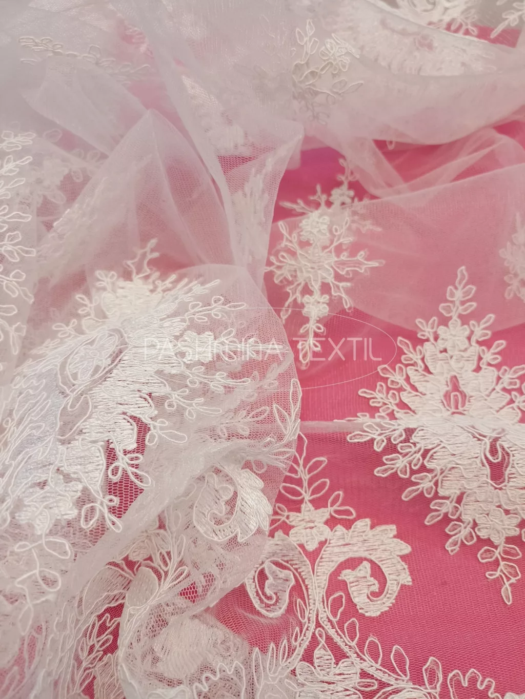 “Indonézia” Zsinóros hímzett tüllcsipke - Fehér