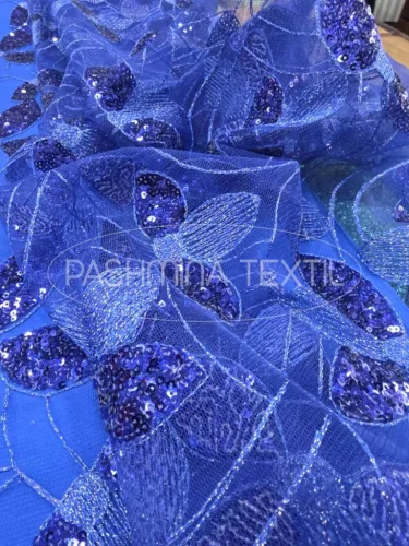Királykék flitteres tüllcsipke