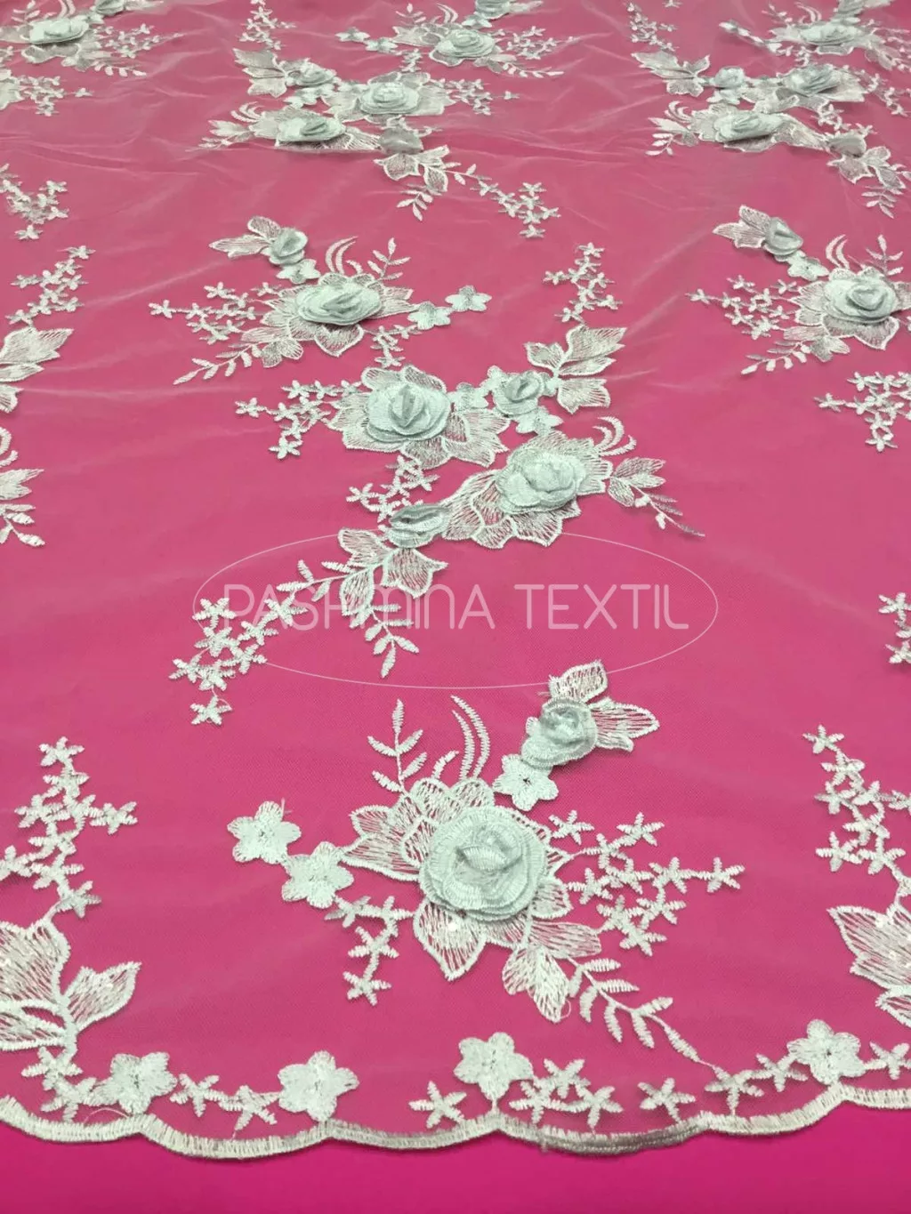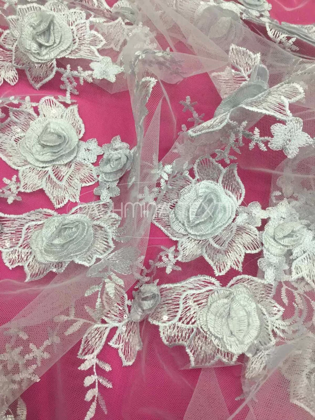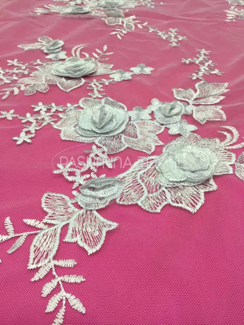 Nagy 3D virágos tüllcsipke optikai - Fehér